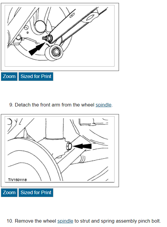 Okay, so you will need to raise the car and remove the tire (you can do this one side at a time). Once that is done you will need to unplug the ABS sensor or any other wiring that maybe in the way. Now you should find a pinch bolt remove that and the bolts that hold the upper support. Now you can pull the strut down you will now have to get the strut out to the knuckle (pinch type). See picture included.