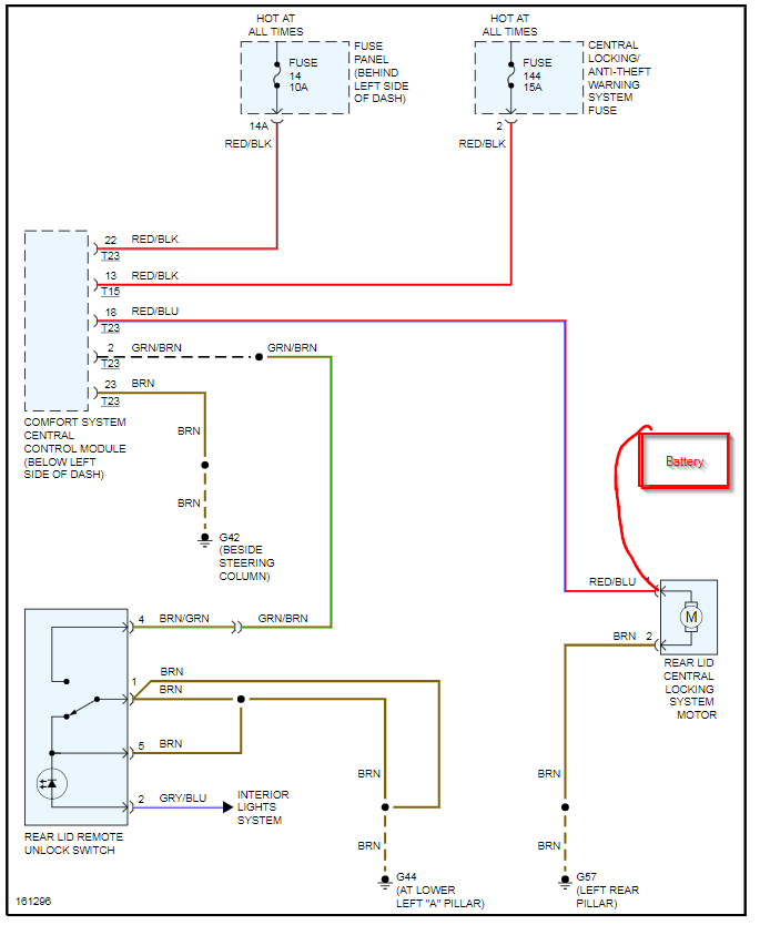 If this is the case then that is correct as the comfort system control module sends voltage directly to the trunk switch when using the fob and the switch is not included in that.