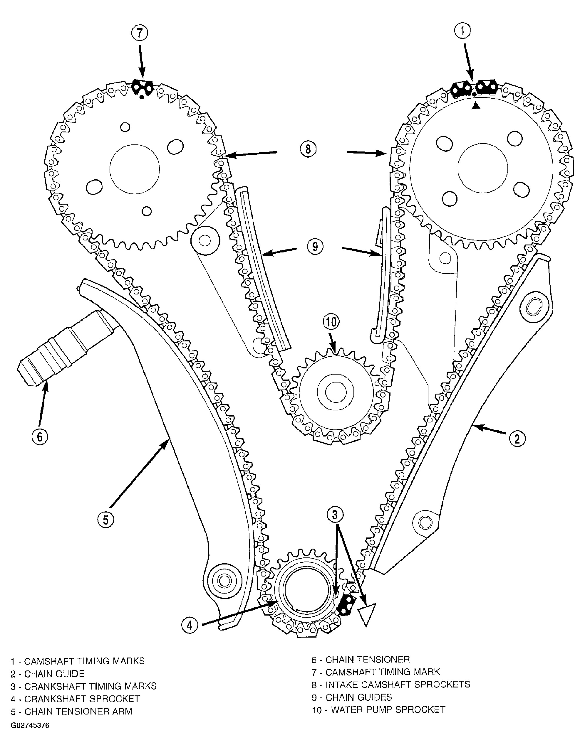 I have this Sebring 2.7 cracked the block so I got it fixed everything new on top heads,timing,cam,ect...drives good for about 8 month all of a sudden one day won't turn over towed to shop found out the cam an crank sensor won't sync up, so we wiggle the cam sensor car cranks up so mechanic put a phat oring around the sensor an stuffs it in the whole very tight so we move sensor around till car starts an let go of sensor done deal car cranks all the time we just leave the sensor screw out fat oring holds in place but after a while oring need to be replaced cause it becomes thin from heat so I replaced it a few times then got to thinking what kind of mechanic would use this as a solution an charge me 125.00 he need to fix this thing cause I feel like the problem is in his work anyway some were in the cam wheel or timing chain or cam sprocket..because the cam sensor is good it's a mapor and it won't even throw a code for cam sensor or crank sensor so I took both valve cover heads off an looke for the timing marks I can't see th mark on the primary chain but I do see the mark on the rear cam sprocket also on the secondary chains I count the links should be 12 links between marks on the rear secondary chain it is correct 12 links not links but marks dots whatever u wanna call it on the chain but on the front one I count 13 links also the chain appeared to be loose but as I bumped the motor with the key the primary tension extended out further an took all the slake away I must say.i just don't see the dark link that should line up wit the timing mark on the primary chain rear cam sprocket,an I count 13 links on the front cam sprocket for the timing mark on the cam sprocket.HELP PLEASE HELP ALSO IT SEEM LIKE THE WATER PUMP WAS FAILING CAUSE NO HEAT AT IDEAL OR REVEN AN THE THE CAR WOULD SLIGHTLY OVER HEAT BUT THEN WEN DOIN ABOUT 50 miles hr heat kicked in an car cooled down an ran as normal as it should I was wondering if this was also a timing chain issue cause I had some one to crank the car with the valve covers off so I could look an see if a sprocket was bent or see any thin out of the norm but only thing I notice was the main tensioner was clicking as the car was turning it was makin a clicking sound don't no if it was retracting back an forth or what is this noise ok? Thanks