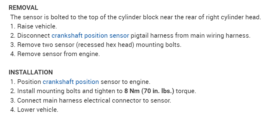 Now, that doesn't mean the sensors can be overlooked completely. The crank sensor in particular is noted on all car brands for being intermittent, especially by becoming heat-sensitive. It is common for the engine to run fine until you stop for a short time, such as when stopping for gas, then the engine will not restart. During "hot soak", heat from the engine migrates up to the sensors causing them to fail, then they will work again after cooling down for about an hour. Given your initial description of the symptoms, keep this in mind if they start to occur again.