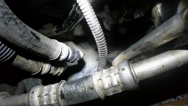 Well, unlike my jimmy. I see 2 hose that come from firewall. Then they have 3 way tees with both ends going back into firewall. Presumbly, to evaporator. The parts of tee's for both line go all the way down to underbody supposing going to back of car. Is there a way can tell if engine is running one hot or cold. etc.?