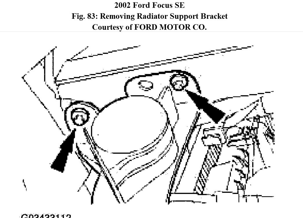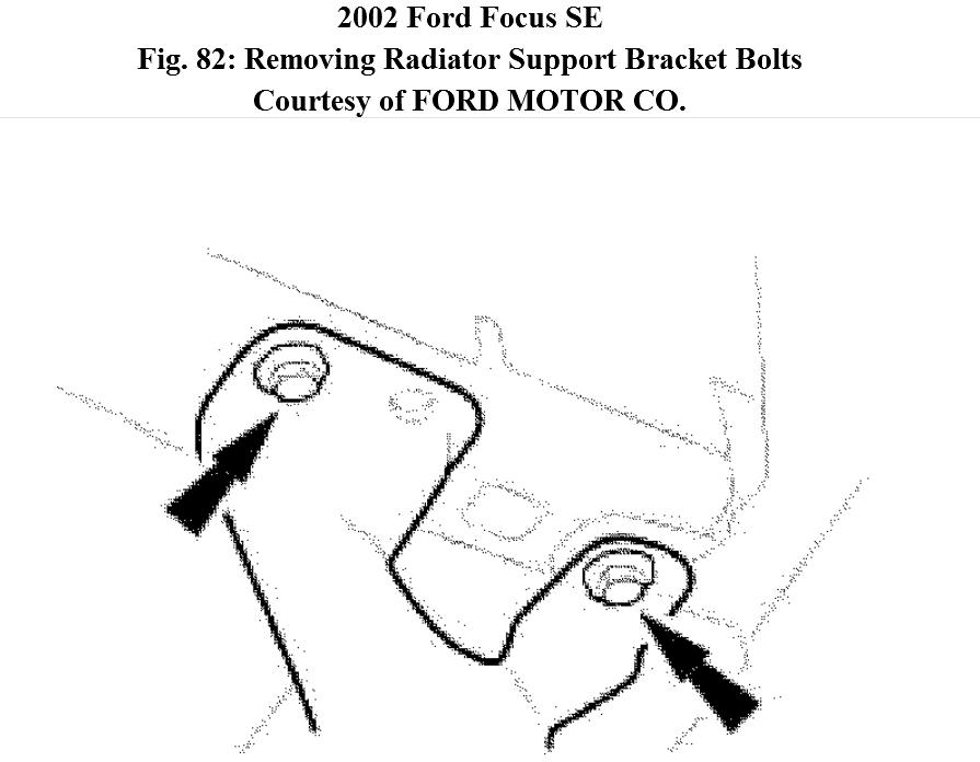 11. Remove the radiator support bracket bolts.