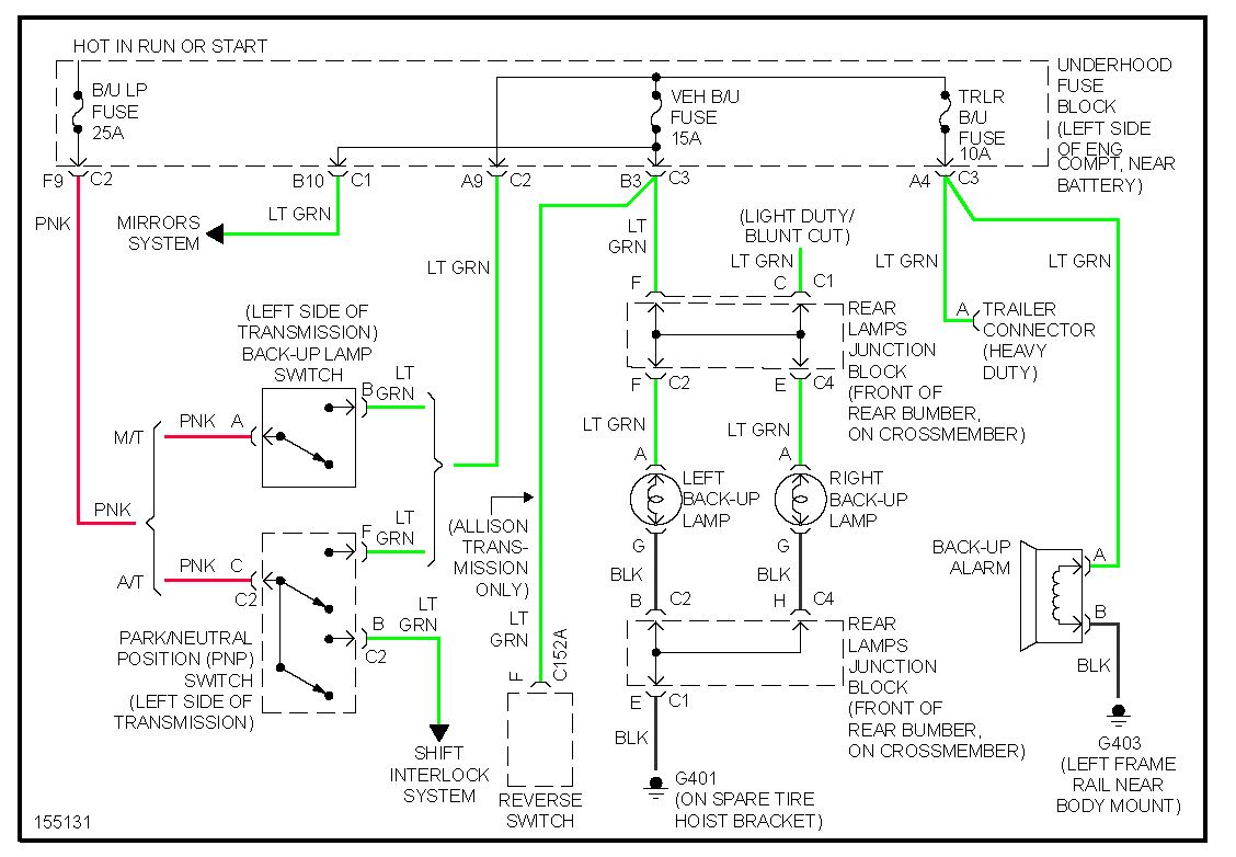 hello i have a 2002 gmc sierra 4wd 1500 series 4.3l. i just replaced the transmission on it along with the neutral safety switch. The problem i am having is the reverse lights come on when the truck is in park and turn off when it is placed in any other gear. I have switched around the green wires on the neutral safety switch and that has not helped. Do you have a schematic i can take a look at or do you know what the problem might be.