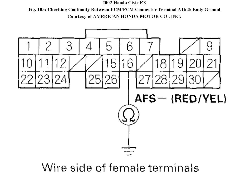 5. Check for continuity between ECM/PCM connector terminal A16 and body ground.