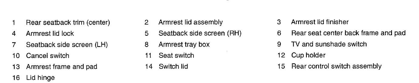4. Remove the nuts (4), and slide the center seatback assembly upward to remove.