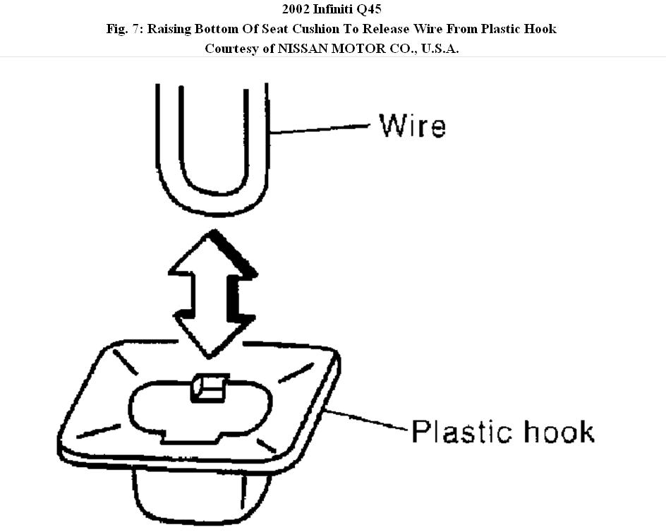 Fig. 7: Raising Bottom Of Seat Cushion To Release Wire From Plastic Hook