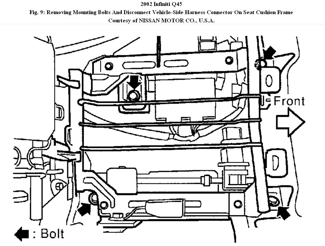 Fig. 9: Removing Mounting Bolts And Disconnect Vehicle-Side Harness Connector On Seat Cushion Frame