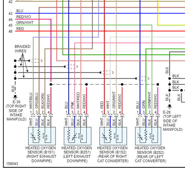 II have a 2002 Isuzu rodeo I had to replace the engine wiring harness and the o2 sensor plugs are different and I want to know if I can splice the old contours on to the new harness and if so where can I find a color wire diagram