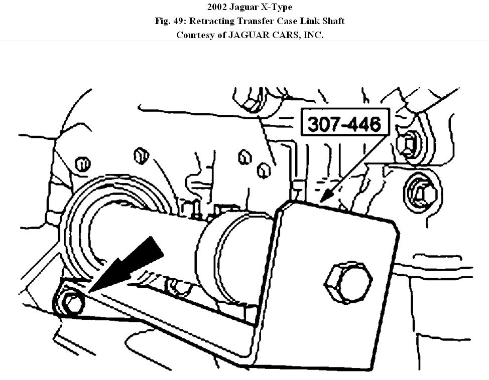 Fig. 49: Retracting Transfer Case Link Shaft Courtesy of JAGUAR CARS, INC.