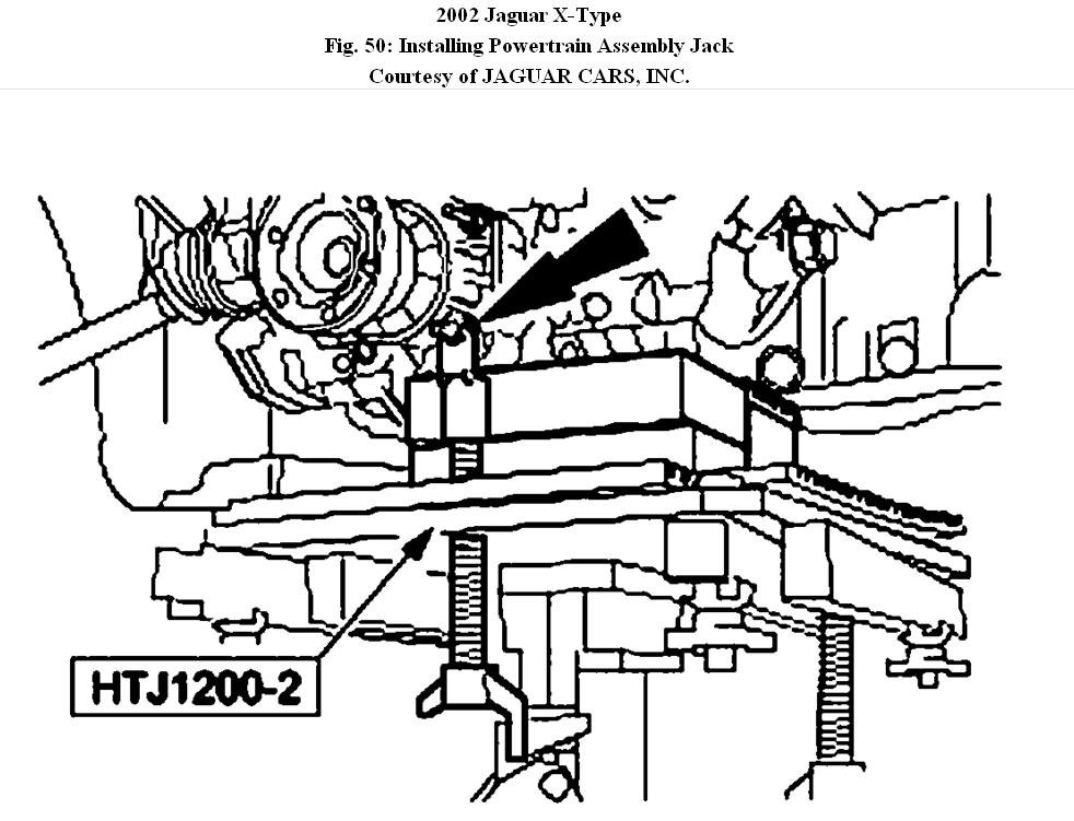 Fig. 50: Installing Powertrain Assembly Jack Courtesy of JAGUAR CARS, INC.