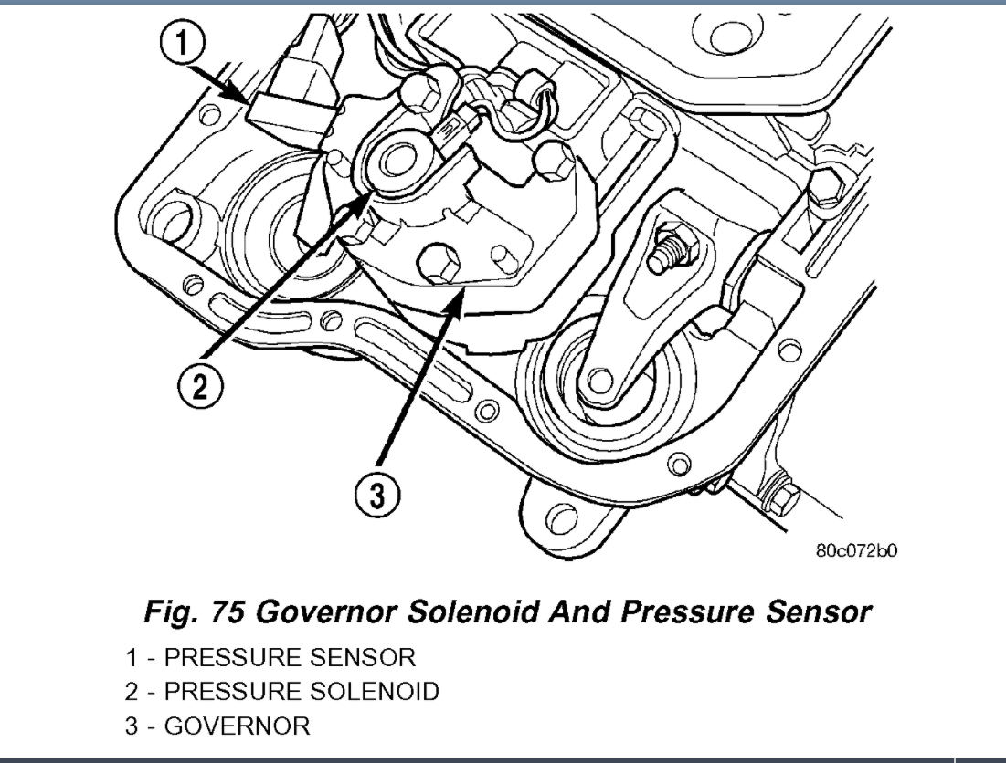 4. Remove screws holding pressure solenoid retainer to governor body.