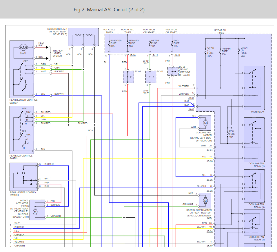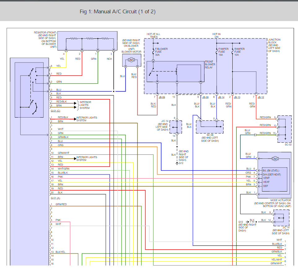 I pulled the blower motor and fan and tested it, it works and spins just fine. The rear heat and A/C and air work just fine. When I push the A/C button in the green light does not come on like its suppose to? When i turn the fan speed knob I get nothing for the front, but back works fine. I checked the fuses and they all look fine, only two things I think it could be are the fan resistor or maybe a relay? If the resistor is out completely will that keep the blower from working all together? Or can it still work with out it?