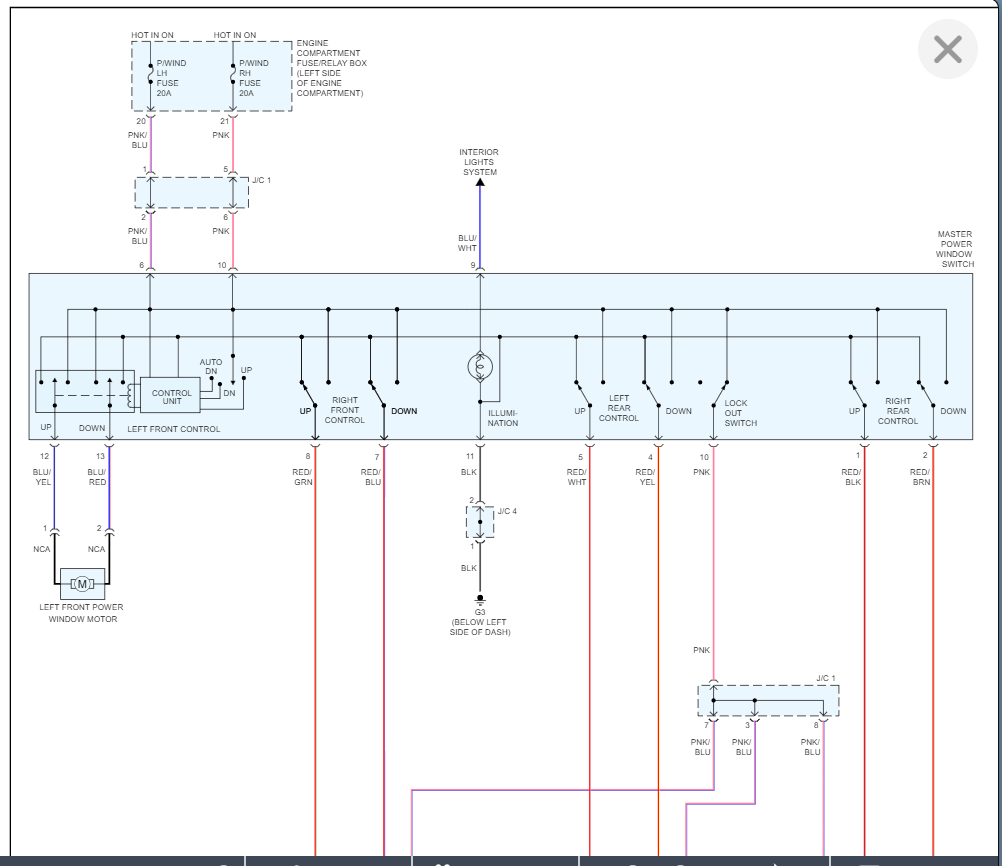 So, on this vehicle the master power window switch controls all the windows so we need to start with this.