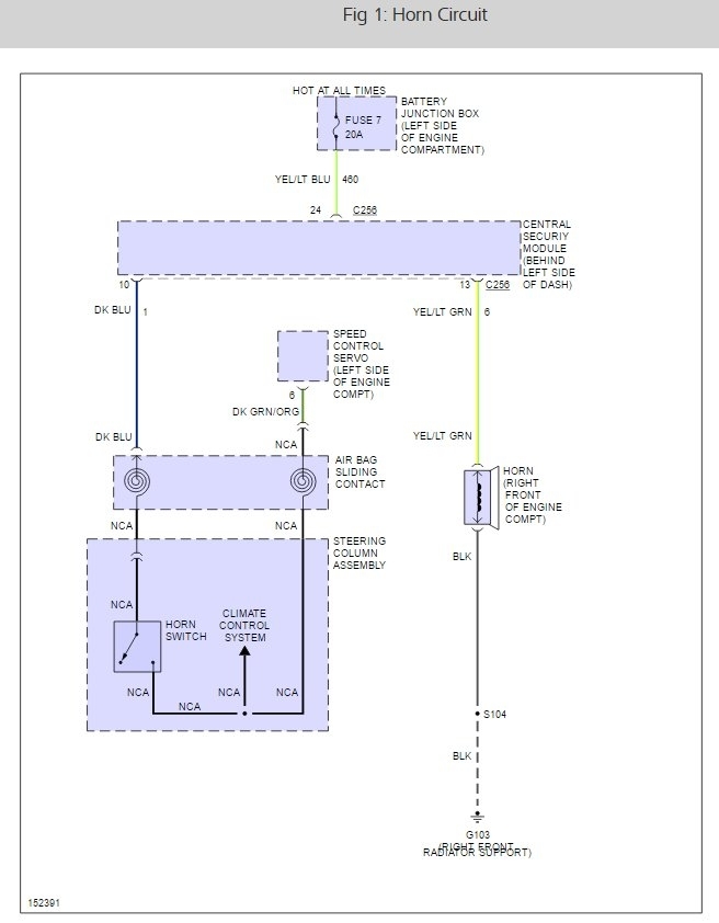 The engineers at Ford have seen fit to turn the simple, reliable horn circuit into a Rube Goldberg system that involves two computers. Instead of the horn switch turning on a ten-dollar relay to blow the horn, the switch sends a voltage to the most complicated computer on the vehicle, the instrument cluster, which interprets that and sends a digital signal to the FEM, (Front Electronic Module), which turns on the relay to blow the horn! The typical repair bill for a dead horn is $800.00 and needs to be diagnosed by the dealer. I hope you report back that your repairs didn't cost that much.