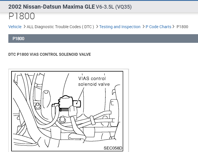 I have the car listed above SE (bought it used about 1 month ago) with about 145,00 miles on it. The other day it started misfiring really bad. There was no check engine light, but I scanned for DTC’s anyways and came back with P0300 (Multiple Random Misfire), P1456 (EVAP system very small leak) and P1800 (Variable Induction Air System open circuit). The VIAS solenoid doesn’t seem to be functioning (doesn’t push the actuator or click when hooked to battery) but I doubt that’s causing this bad misfire. I haven’t found any bad or disconnected vacuum hoses either. Any ideas? Thanks!