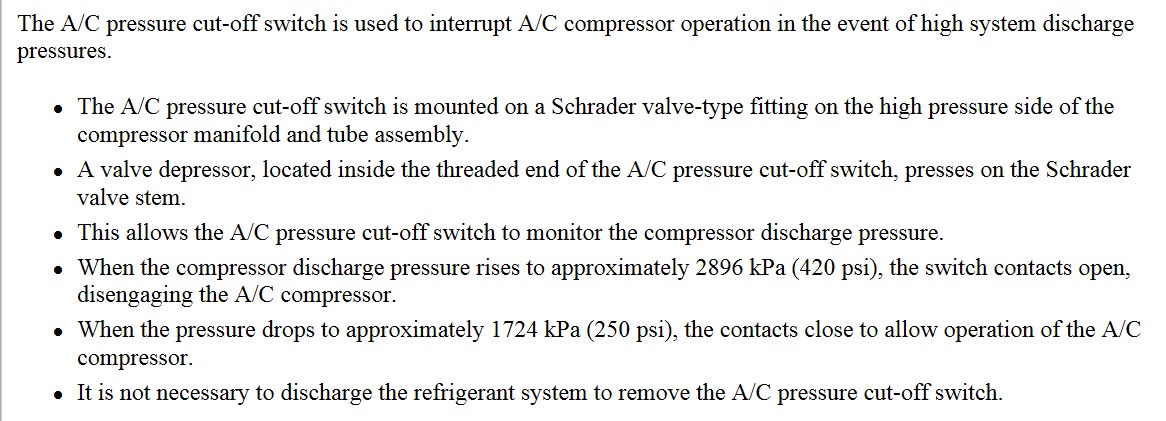 The unit was cycling rapidly on and off so I evacuated the system, pulled a vacuum (no leaks), and weighed in the correct charge 1lb14oz. When the vehicle is idling in park or neutral, the system works perfecting with no cycling. Pressures look great. As soon as I place it in drive, the a/c starts cycling on and off and the idle "hunts" between 600 and 1000 rpm. As soon as I place it in neutral, the unit operates normally. I do not have any OBD II codes shown. The unit seems to cut out at about 30 psi and high side around 225 psi well within normal operating ranges. I bypassed both the HP and LP pressure switches and it continues to operate as described above. I would appreciate any information you can provide. Thank you.