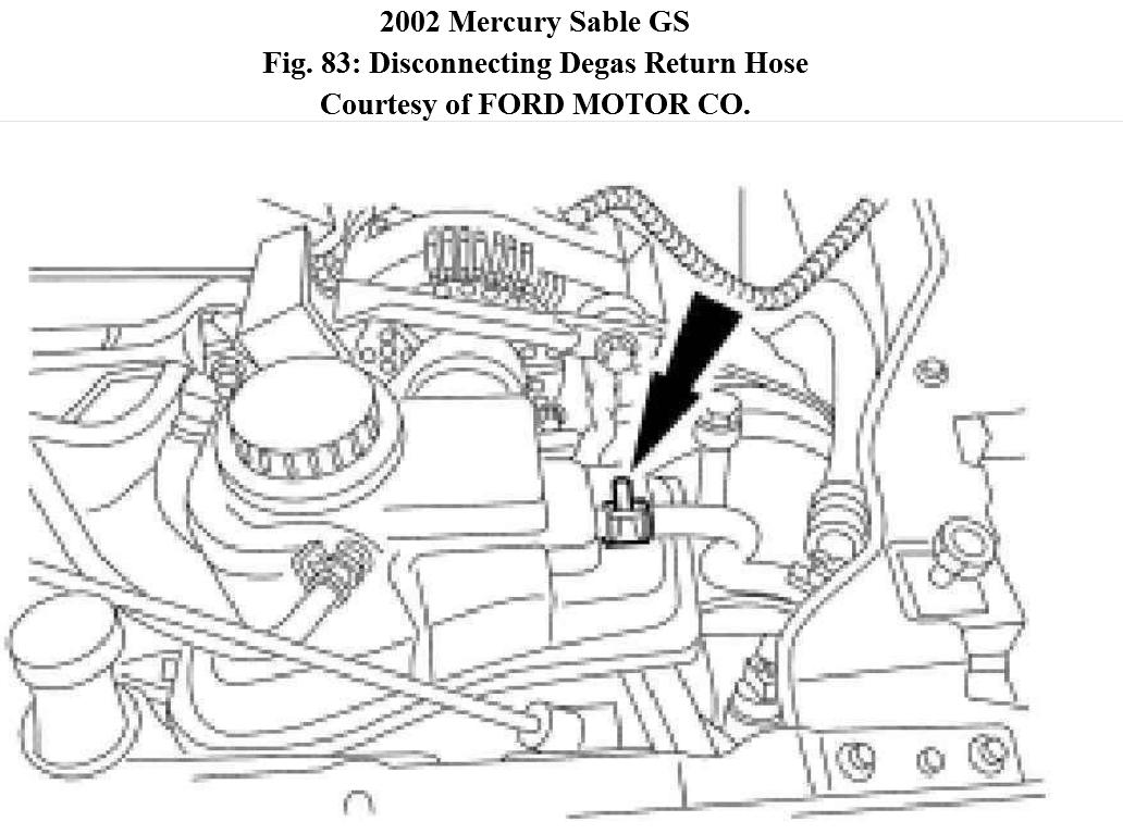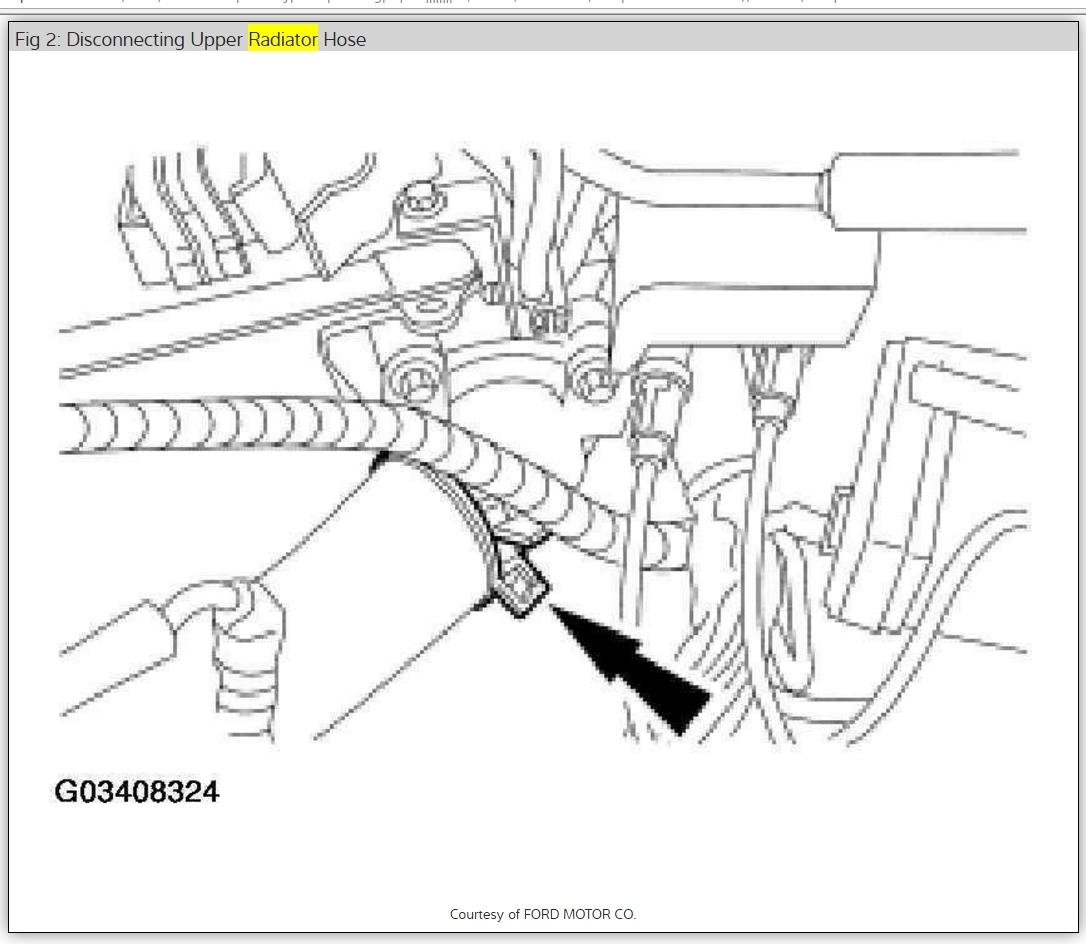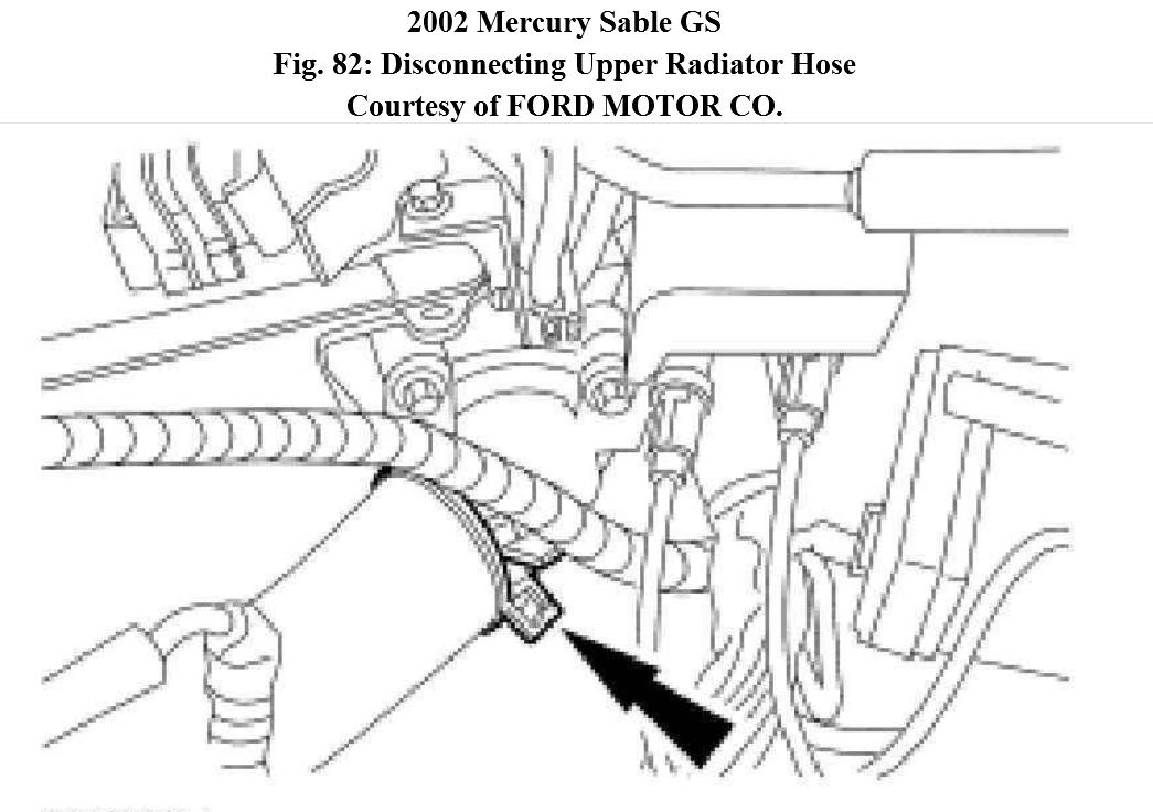 Fig 2: Disconnecting Upper Radiator Hose. Disconnect the degas return hose.