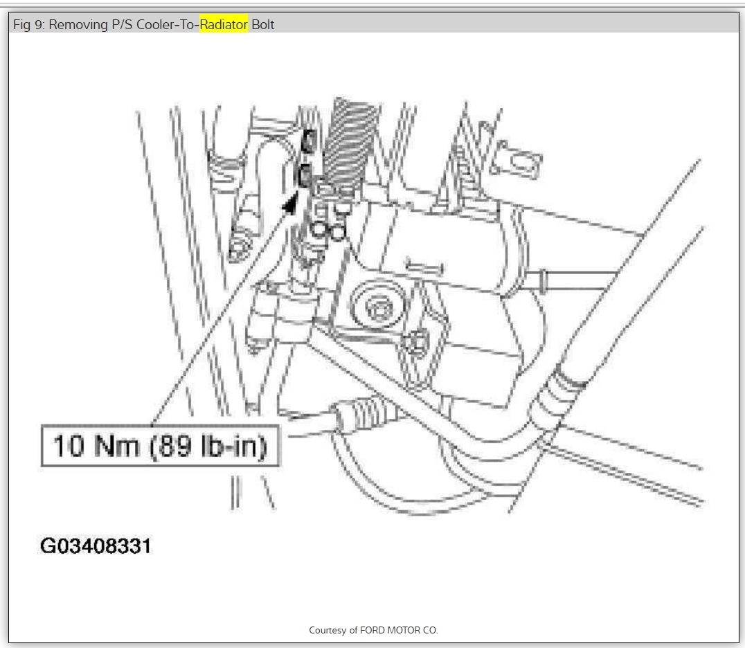 Fig 9: Removing P/S Cooler-To-Radiator Bolt. Remove the nuts and the radiator support brackets.