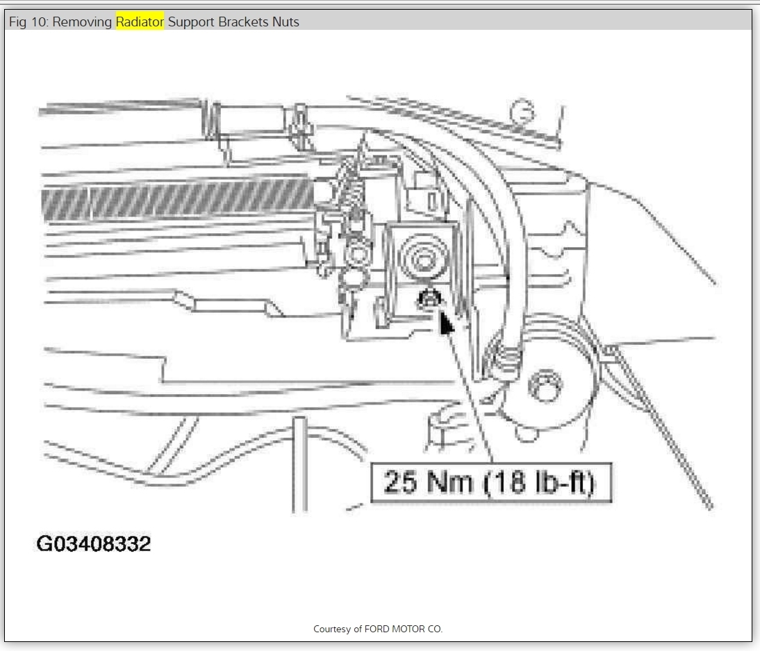 Fig 10: Removing Radiator Support Brackets Nuts. Remove the radiator from the vehicle.