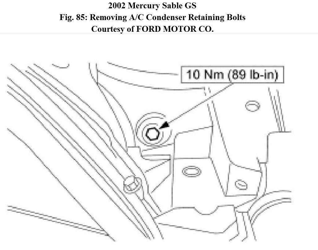 Fig 4: Disconnecting Upper Transmission Cooler Line Using Special Tool. Remove the two A/C condenser retaining bolts.