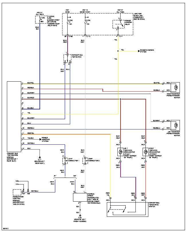 Also, the power windows did not roll up. In addition the: odometer, speedometer, and rpm gauge all stopped working at the same time. The "Gauge fuse" @ 7.5 amp was blown and upon immediate replacement and the key turned on the fuse blows again. I see this posted in several other sites, but none have a reply. Still tied to the power top?
