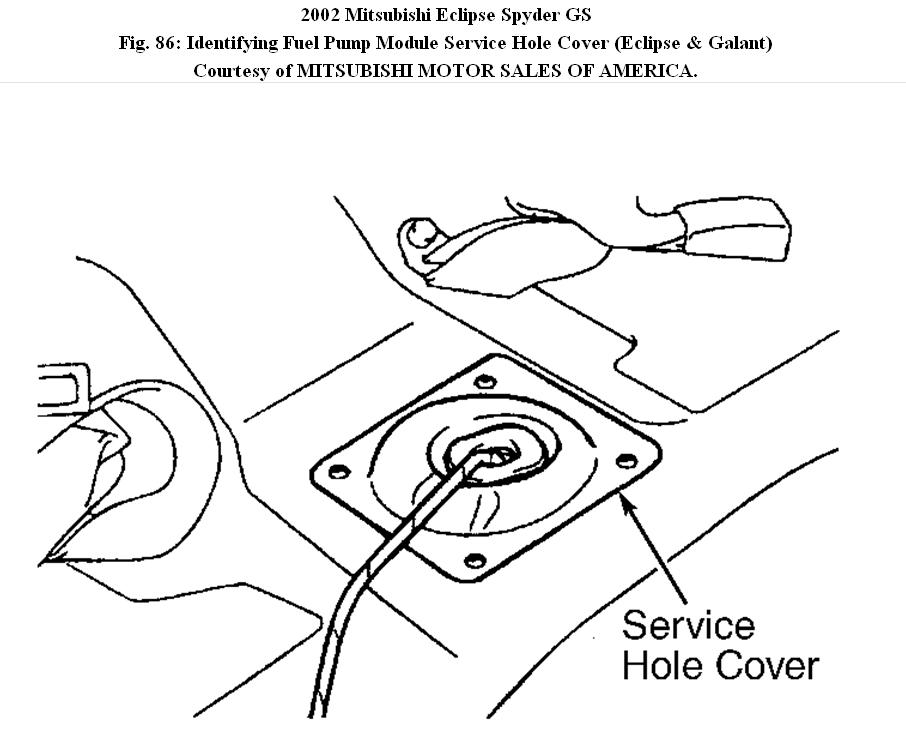 Fig. 86: Identifying Fuel Pump Module Service Hole Cover (Eclipse & Galant)