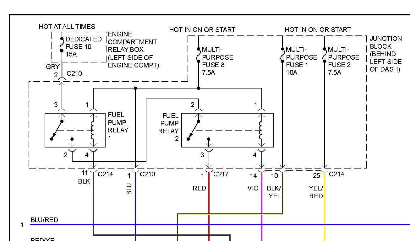 ive checked the 2 fuses dedicated to the fuel pump, one is a 15 amp under the hood, and the other is a 7.5 under the dash, both are good, the first relay in series dosnt send power thru to the 2nd relay to power the pump, and the second relays coil has power but the ground side is controlled by the computer, the car runs fine if i remove the second relay and feed the direct coil power to the pump, but pump runs constant. i have existing problem with my alternators voltage regulator putting out too much, would this cause my computer to stop sending the signal to my fuel pump to run? or do i have another issue?