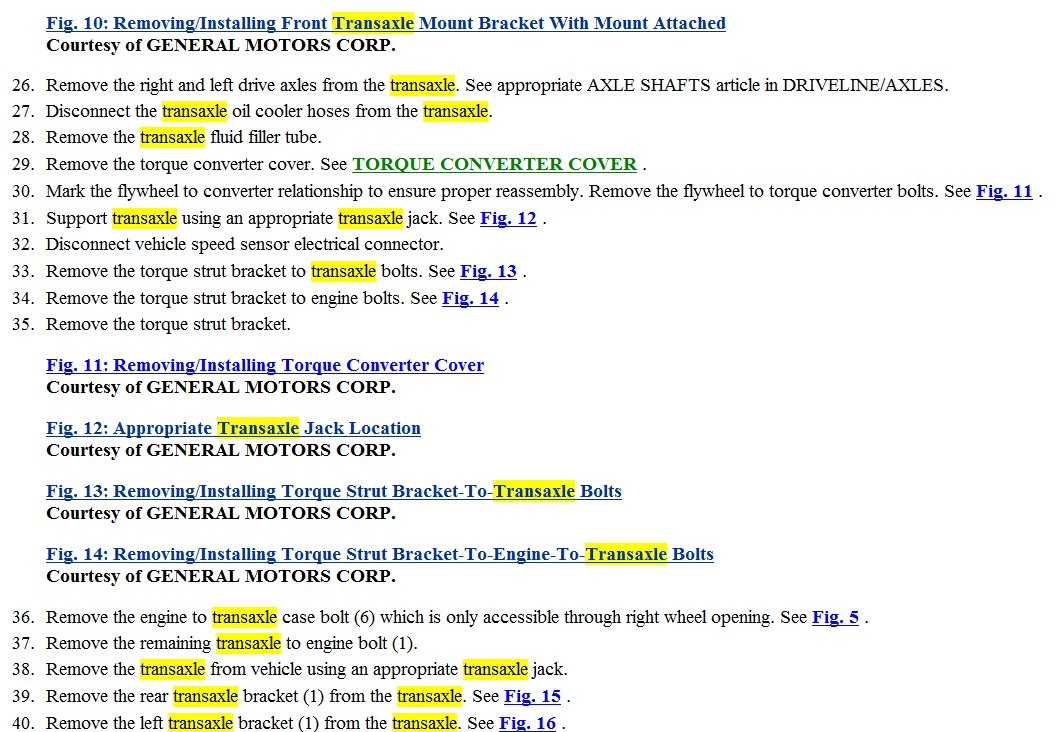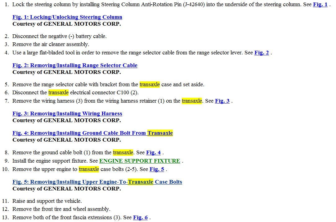 I am attaching intructions for transmission removal and the files are numbered in sequence. I am also attaching all referenced FIGs form instructions.