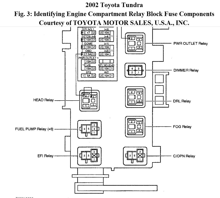 There are 2 relays that the fuel pump operates on, namely the Circuit Opening Relay and EFI relay, both located in the engine compartment relay box.