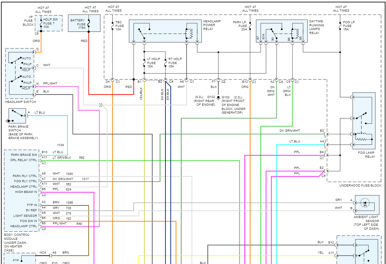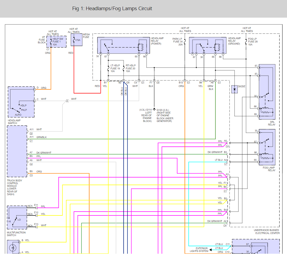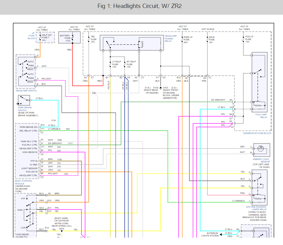 looking for a headlight wiring diagram from the under hood fuse box to the headlights