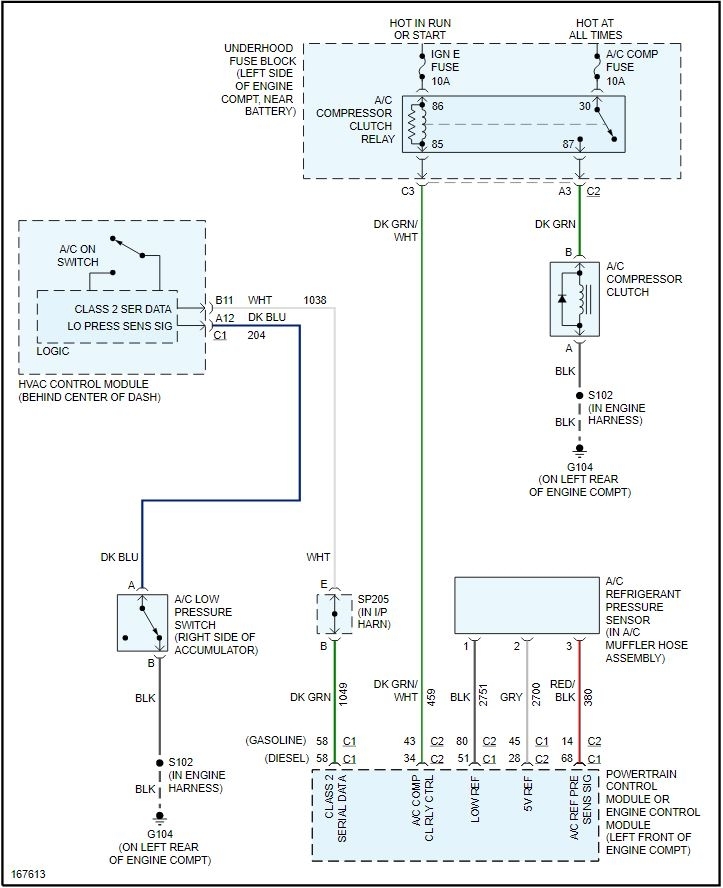 If the system won't take freon and only works by jumping the low-pressure switch, check the Schrader valve on the low-pressure side to see if it is stuck. For it to work when jumping that switch, it has to be low on Freon.