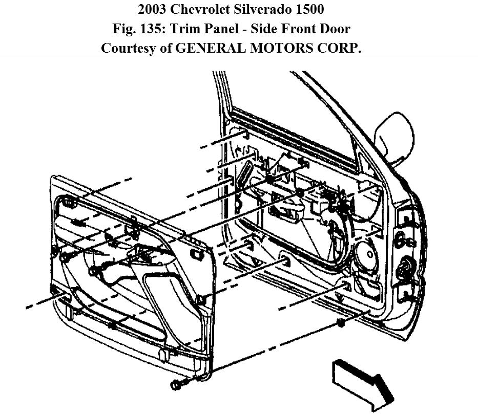 8. Remove the trim panel from the door. Carefully slide the trim panel up in order to release the retainers from the door.