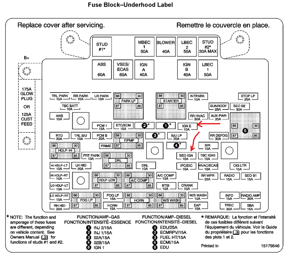 Replaced a new alternator, the battery is 2 months old. The battery is not taking a charge, so I was told that I need to replace the 175 mega fuse for my vehicle listed above. The Chevy car parts service rep was kind enough to print out a diagram of its location.