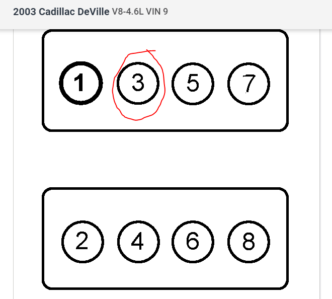 Cylinder 3 is located in bank 1 (right side in pic1). That would be near the firewall. Pic 2 shows cylinder 3 location.