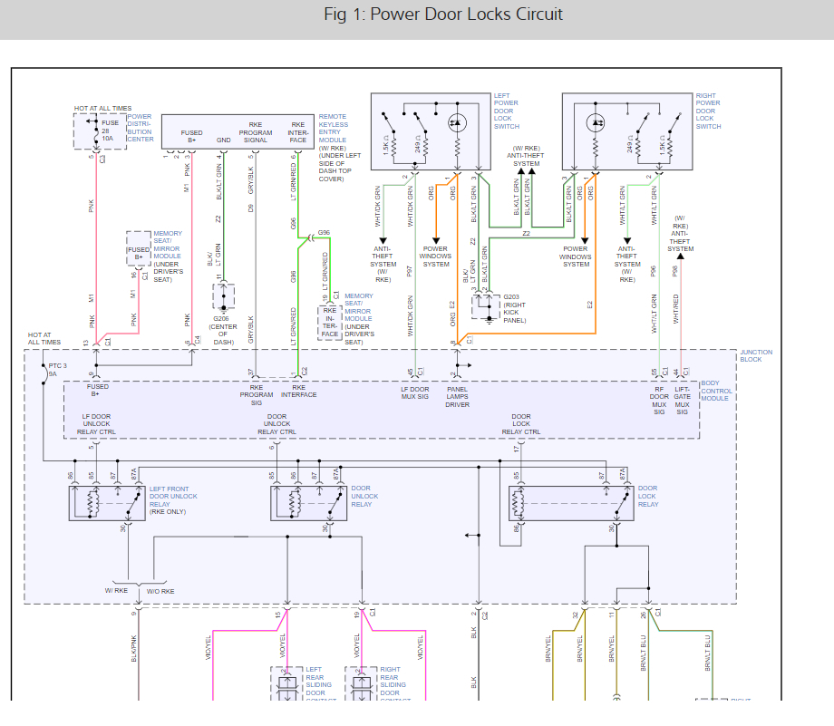 Sounds like the actuator motor for the lock is in need of replacement, soon! Severl items can be on one fuse, not unusal. as for the tranny, perform this self diagnostic, post the code(s) that pop up. With the ignition switch in the OFF position, depress the TRIP and RESET buttons.