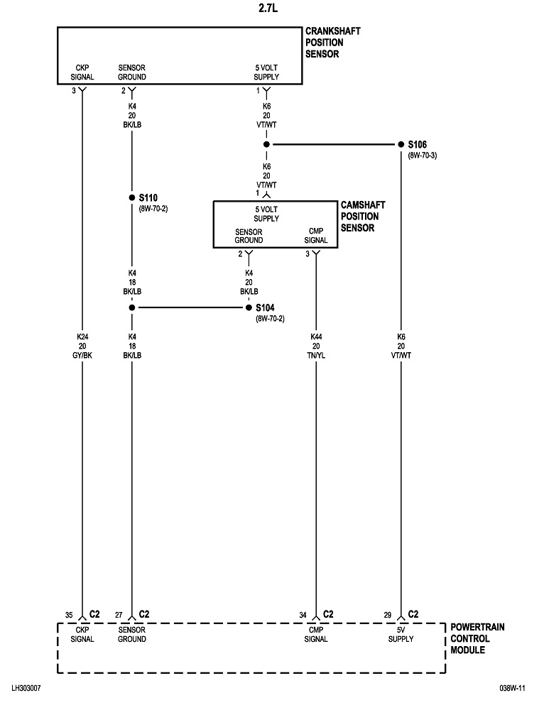 There's a third thing I can think of that you might have run into, but this too, I have never checked myself. Beginning with the '97 Intrepids, and maybe sooner on other models, the Engine Computer can take up to 20 minutes to go to "sleep" mode after the engine is stopped. Until that happens, it can draw up to three amps. Various emissions-related tests take place during that time that can't be performed with the engine running. It would stand to reason if the computer is staying powered up, every part of it would continue working, including that 5.0-volt power supply. You may have found 5.0 volts on the crankshaft position sensor while the computer was still awake, then found 0.0 volts on the camshaft position sensor right after it went to sleep mode. If you wanted to recheck that, all you have to do to wake the computer up is to disconnect the battery for a fraction of a second, or cycle the ignition switch to "run", and then back to "off".