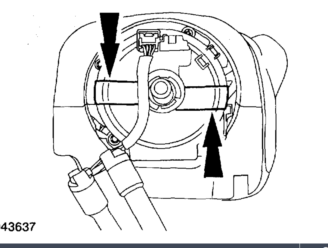 5. Apply two strips of masking tape across the clockspring to prevent accidental rotation when the clockspring is removed.
