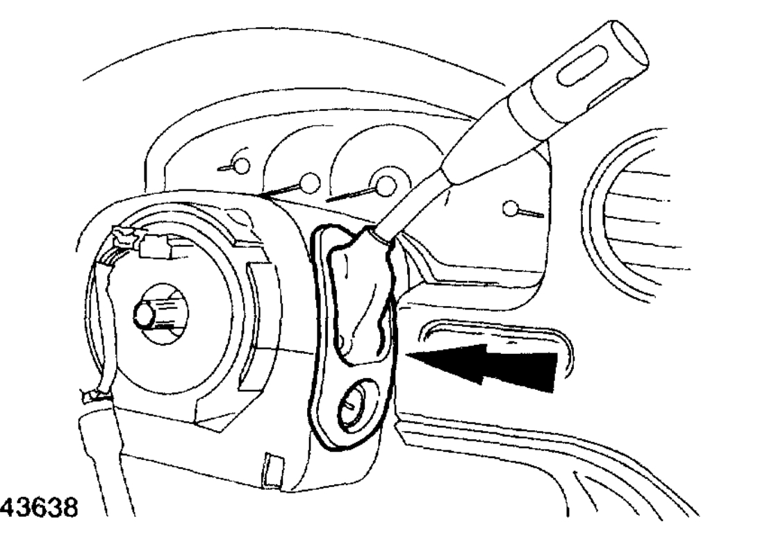 3 While releasing the retaining tab, slide the multi-function switch up and out of the way.