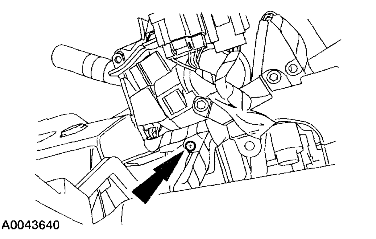 8. From under the steering column remove the screw and then remove the upper steering column shroud.