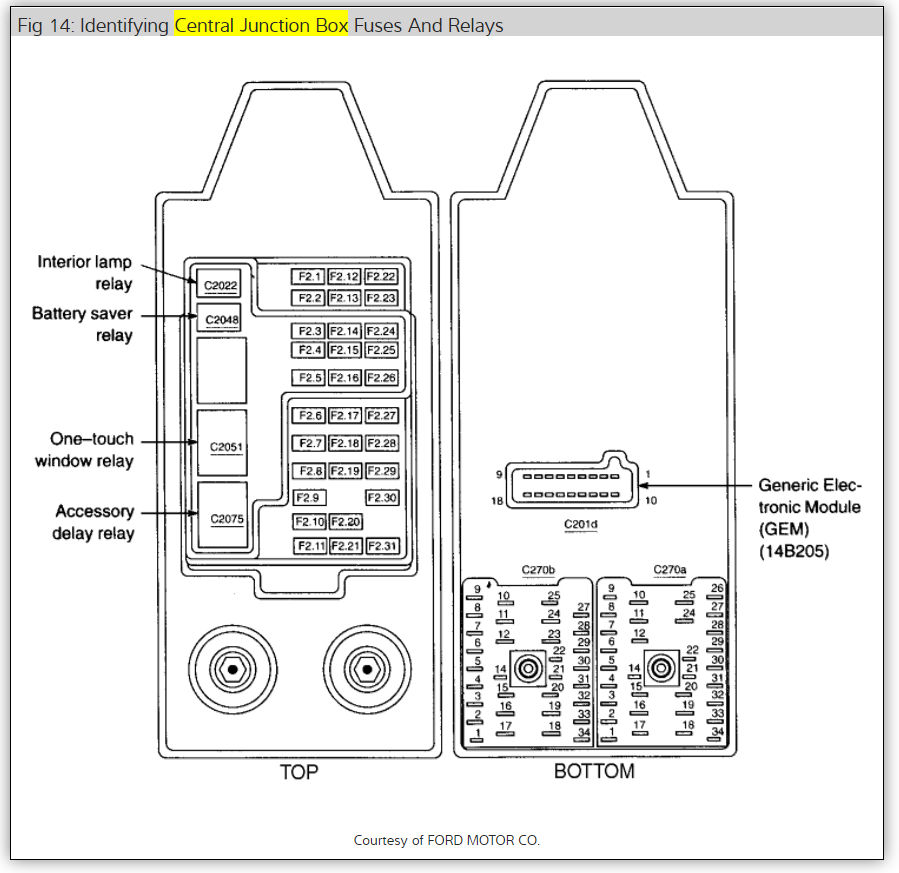 I attached a wire diagram for you to view. You need a voltmeter or test light to verify power on both sides of the fuse indicated. Then go to the GEM module and make sure there is power into the module.