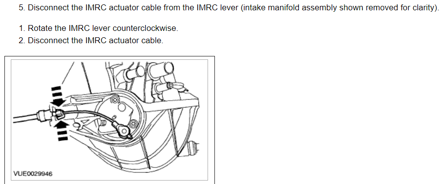 On models equipped with cable operated IMRC or IMSC, check IMRC or IMSC cables for correct routing and possible binding. Ensure cable core wire (if equipped) has slack at IMRC or IMSC housing and that lever contacts close plate stop screw. Ensure return springs operate properly and plates open and close fully. On models with vacuum operated systems, engine must run for 20 seconds, then perform KOEO self-test. On all models, operate IMRC or IMSC plates at intake manifold while checking for binding and sticking. If any faults are found, go to next step. If no faults are found, go to step 17).