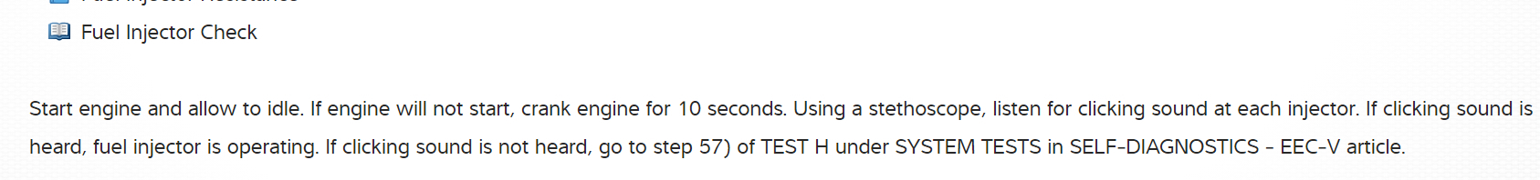 Okay, I did not get a chance to run your suggested test , but I do have more information when I go out and start the car after a few days i turn the key on and the check engine light comes on and its starts then I turn it off and try to start it again and no check engine light and it won't start this seems to be consistent, hooked up code reader to it , no codes KOER no codes KOEO using a Bosch code reader codes were read both when car was running and when it wont start , I did note that when I was reading individual sensors that fuel 1 was open and fuel 2 was n/a, okay , what do you think? now I'm thinking it has something to do with the main computer at the kick panel passenger side floorboard. I was thinking ignition switch for a minute but I cycled the key many times trying to see if it was a shady connection there, I don't think that's it now. too many things to do and not enough hours in the day to do them. by the way how is your day?