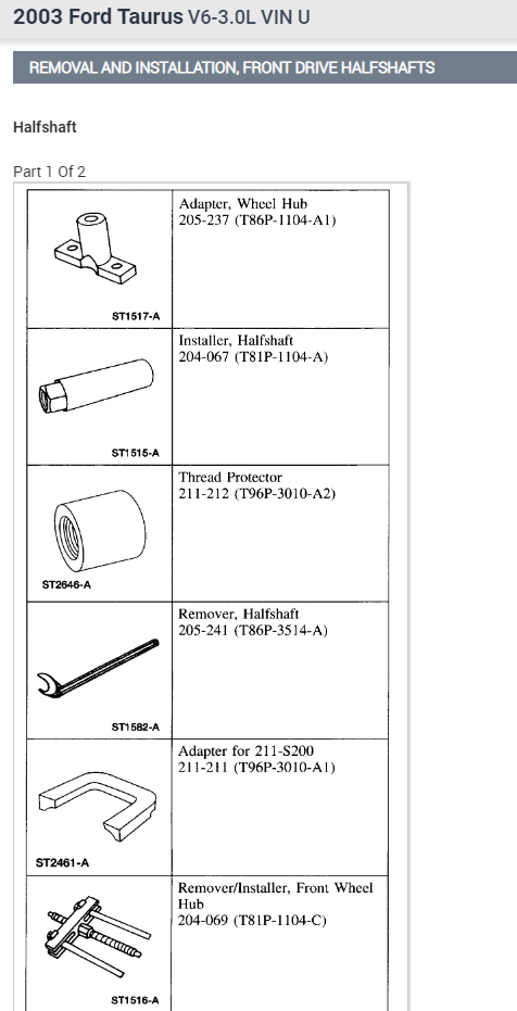 I have attached diagrams for the replacement procedure as well as the special tools list below.