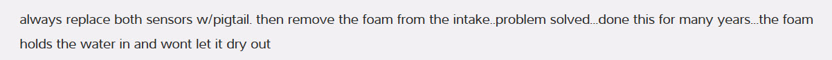 I used a shop-vac to clean and dry the sensor holes. I did not use any thread sealer, etc. I used a light coat of silicone sealer on the rubber plugs where they contacted the valley pan and where the wire passed thru.