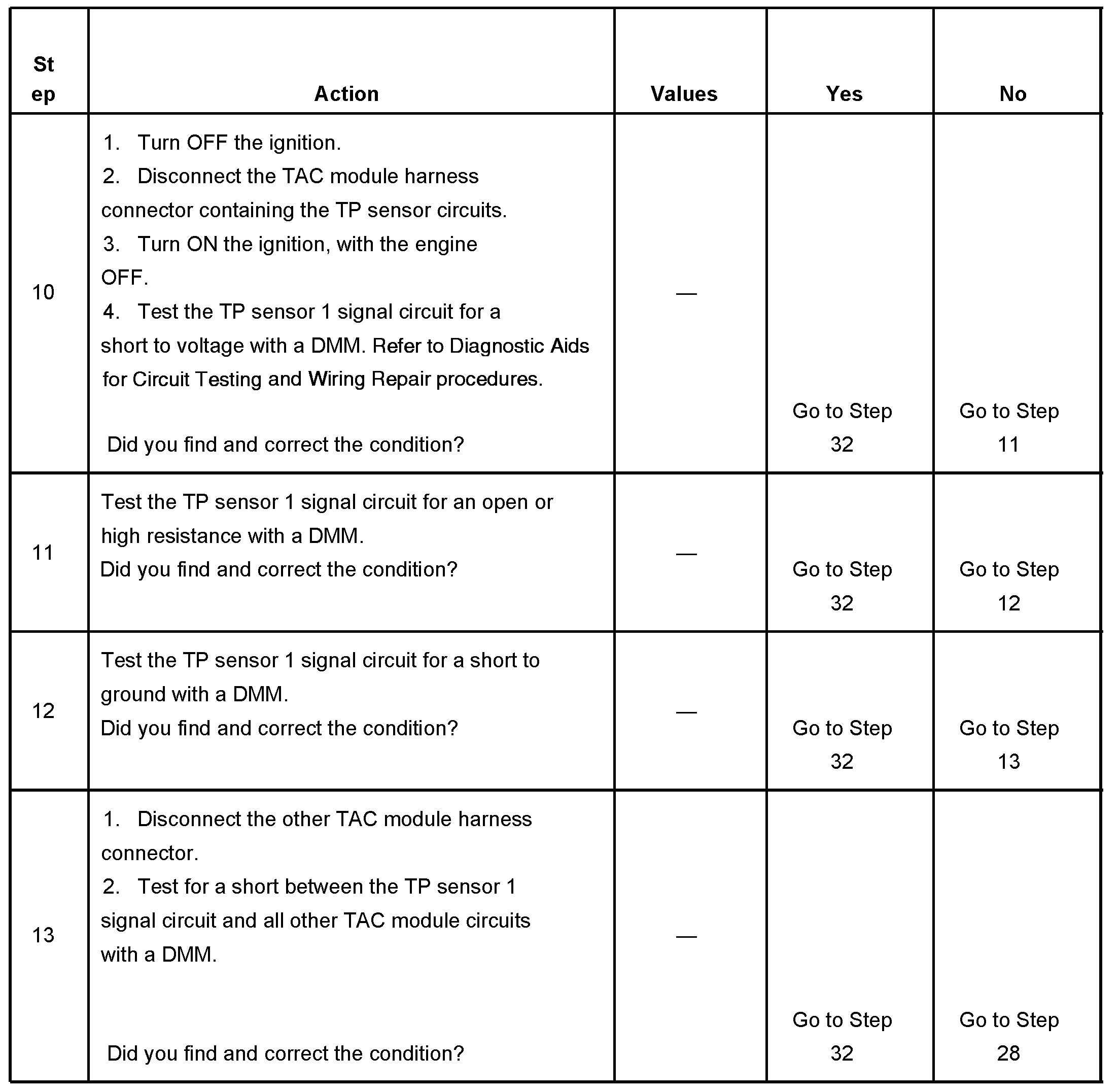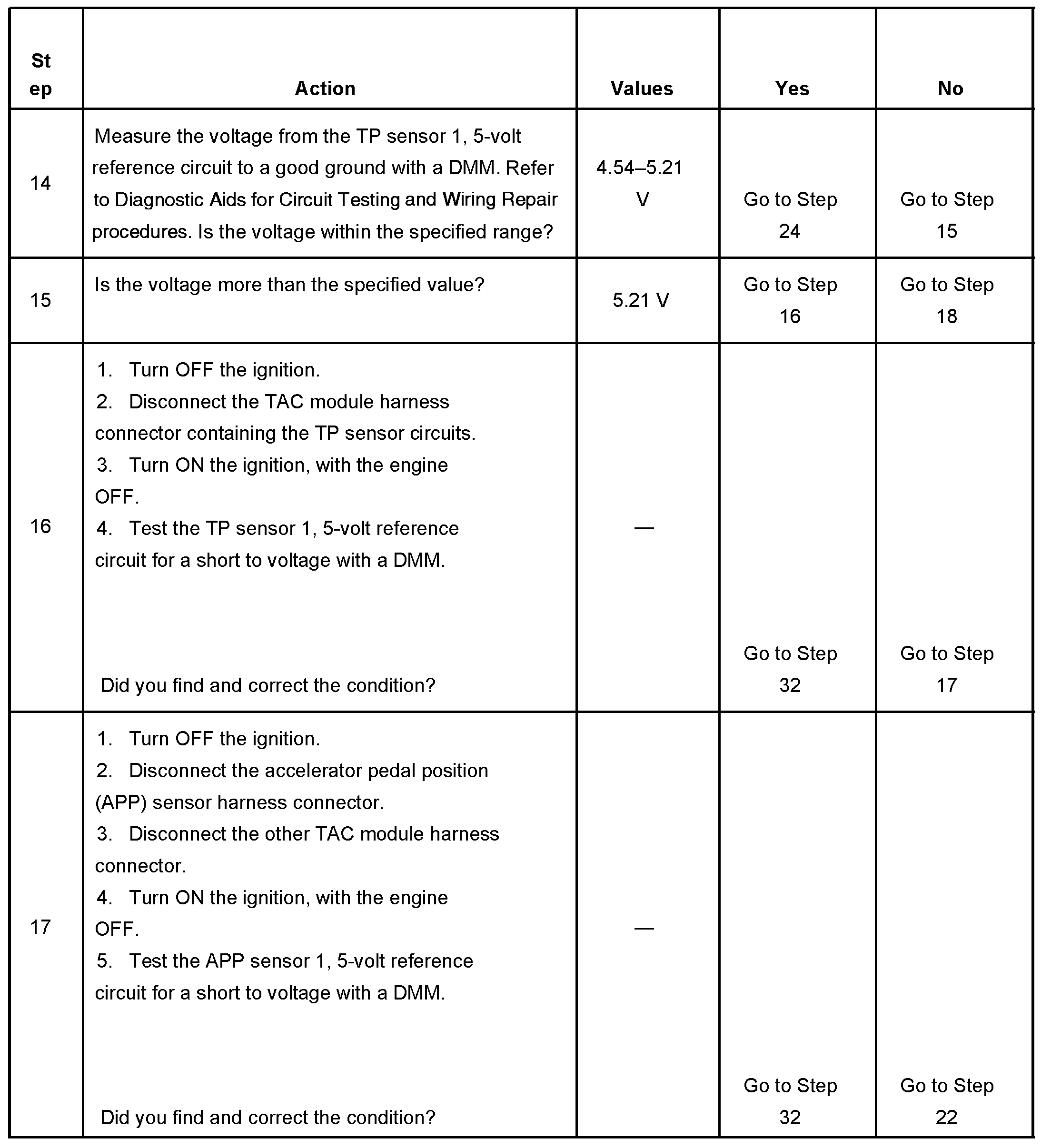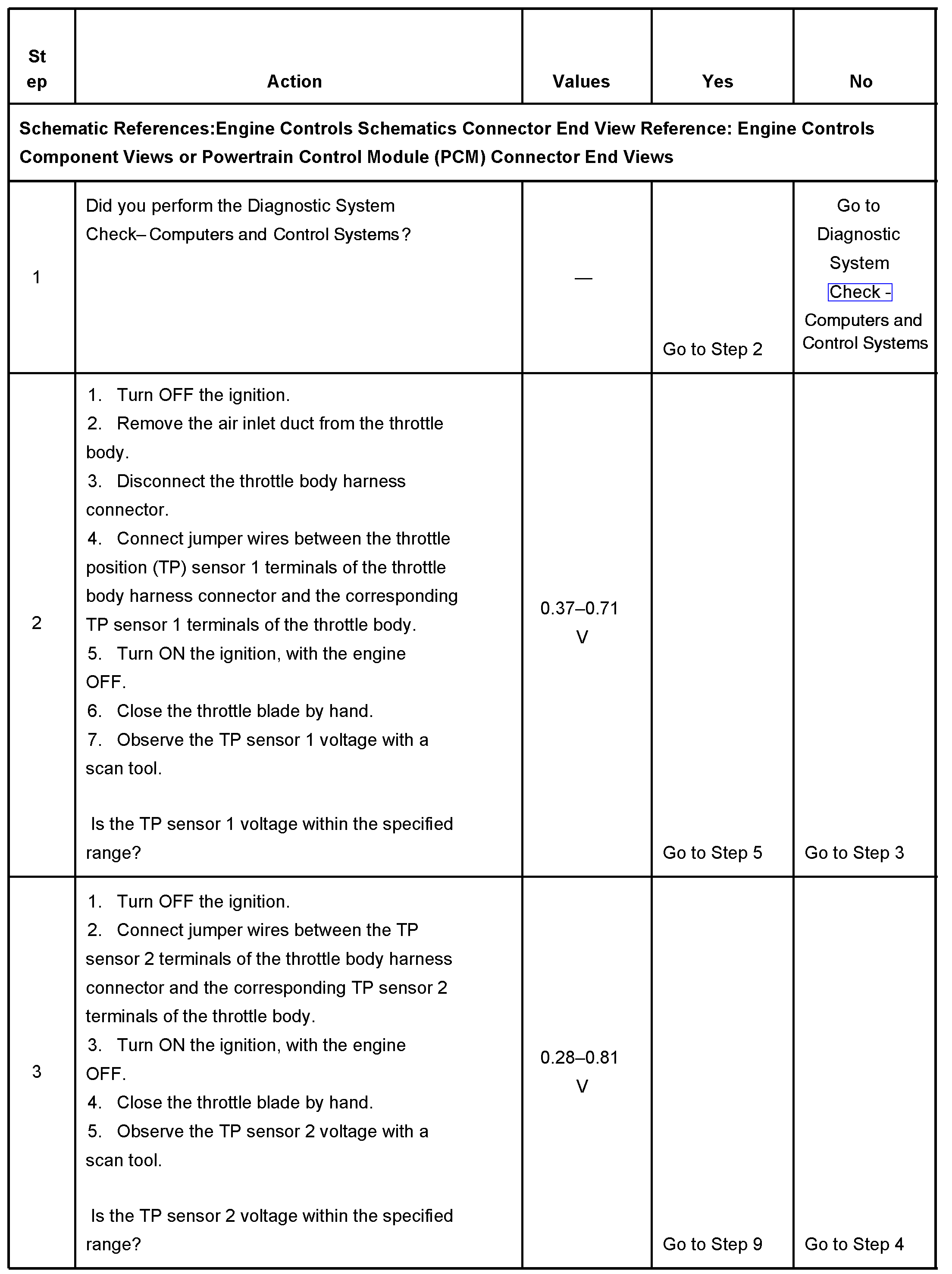 - The TP sensor 1 signal voltage is less than 0.37 volt or more than 4.51 volts.