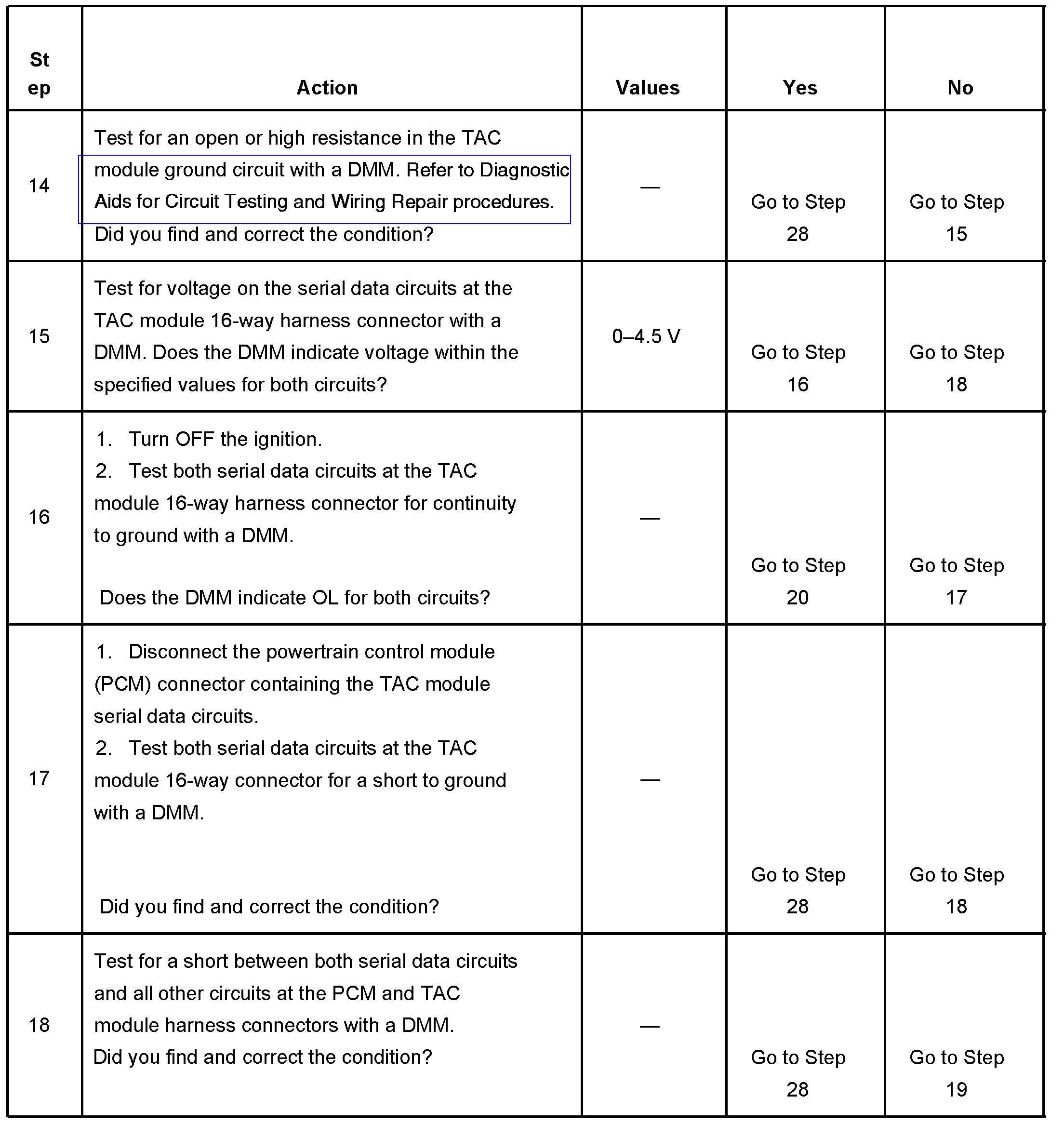 - Inspect the TAC module power and ground circuits and the TAC module/PCM serial data circuits for intermittent connections.