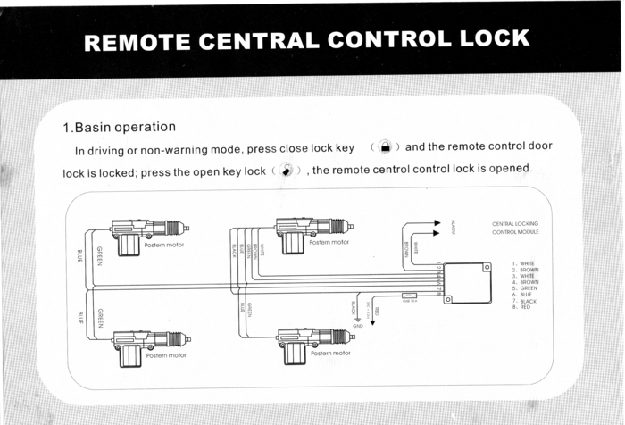 I have purchased a power door lock kit and would like to install it myself. While the instalation of the actuators and the wiring is in the kit's instructions I do not know how to connect that to the car's power. I am including a picture of the wiring diagram that comes with the kit (it is not the best quality and I hope it helps you).