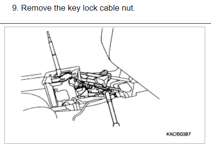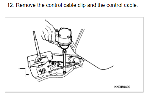 The job is not too bad. You must remove the shift plate from the inside to install the new cable. Where the cable goes through the bulkhead, there should be a grommet. It may be held in place just by friction, or it may have a bolt/flange/bracket securing it.