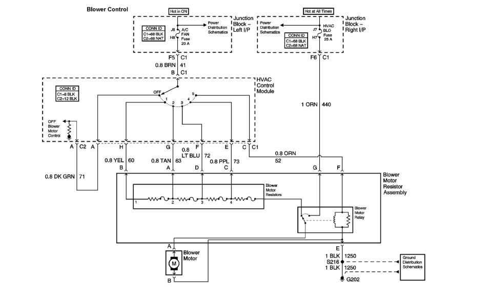 Just bought this impala. Discovered the blower fan only blows air when the key is in the ignition and turned to the right but if you start the engine the blower quits..with the engine off and the key turned right all 5 blower settings work also but start your engine and its dead again not blowing anything out the vents.