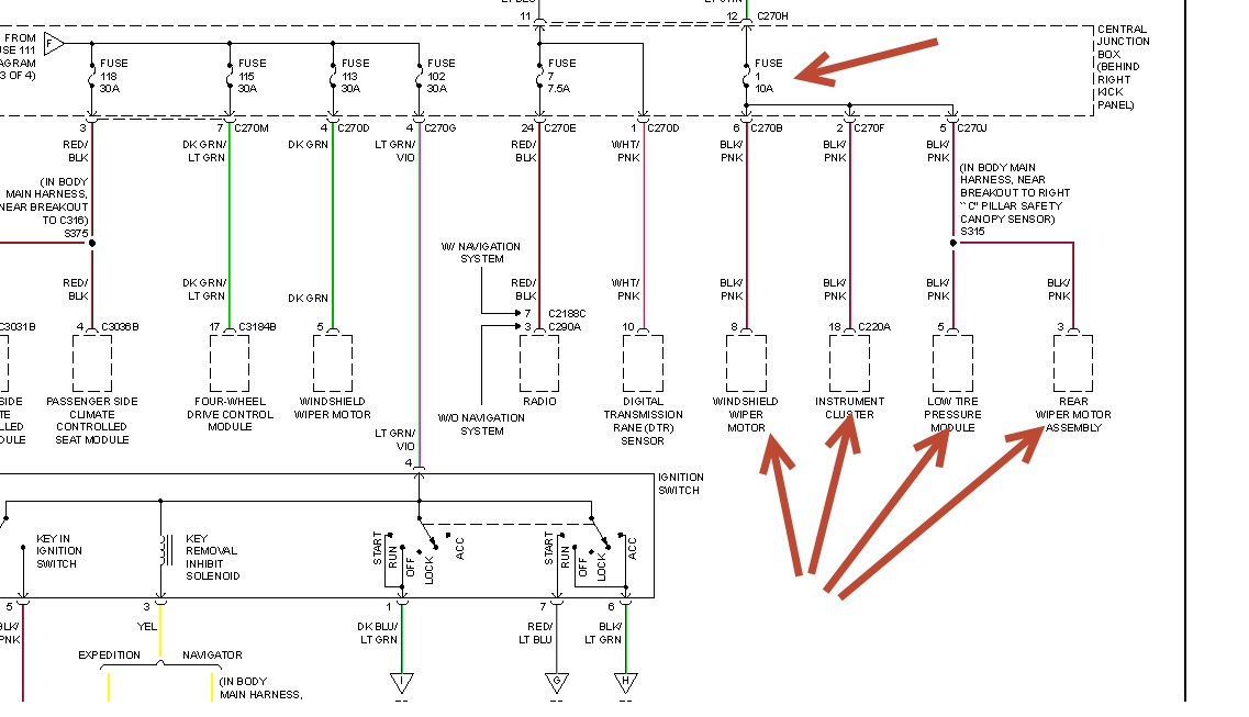 The battery drains overnight. I measure 340mA current draw with ammeter in series with battery cable, everything off, doors shut. About 2/3 of this current draw is from Fuse # 102: "Ignition Switch Power". The other approximately 100mA is from the Instrument Cluster, its own self. So...